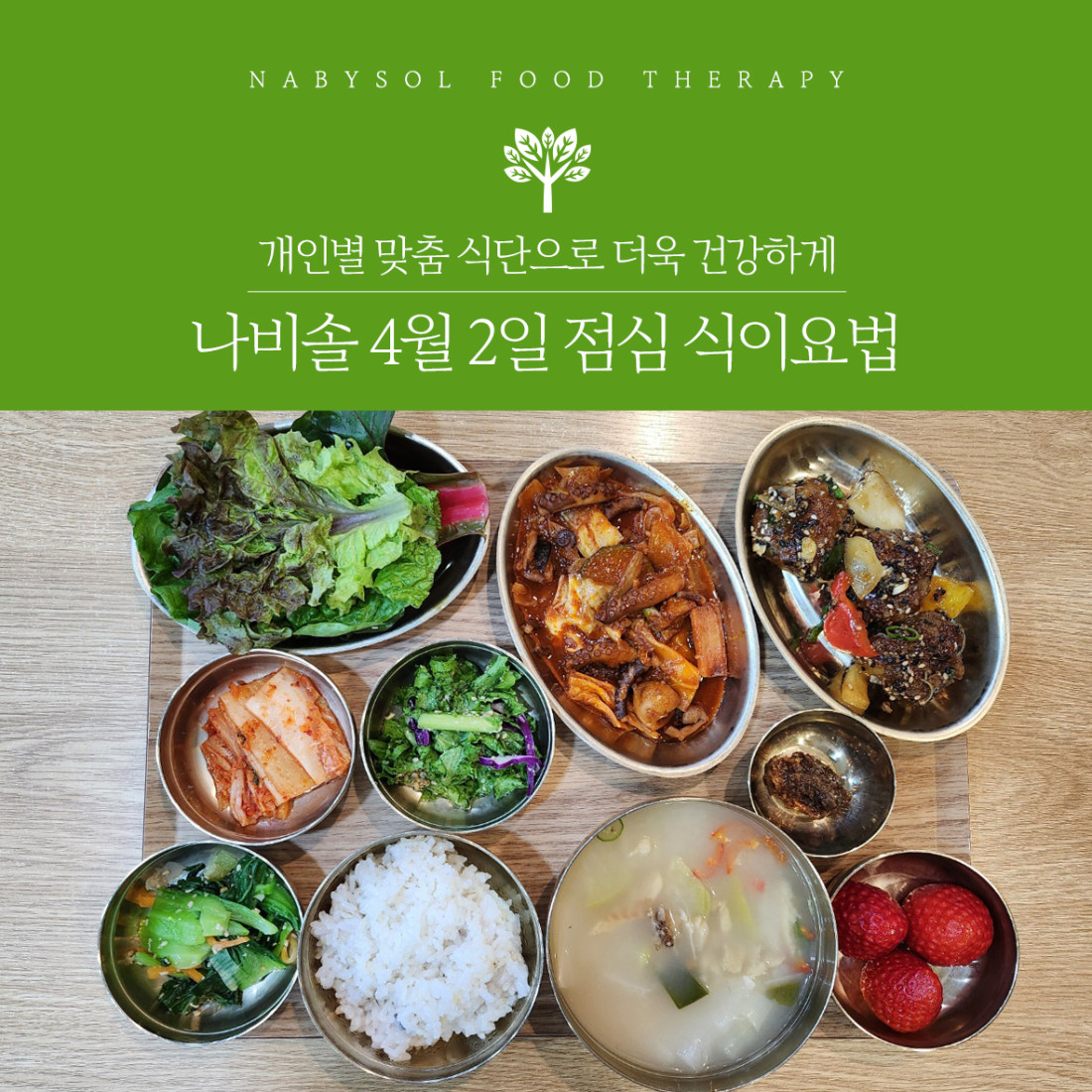 점심 : 황태국/낙지채소볶음/수제미트볼조림/치커리무침/청경채나물/김치/쌈채소/과일